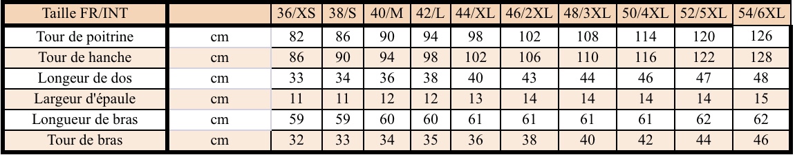 Si vous vous trouvez entre deux tailles, nous vous recommandons de choisir la plus grande.